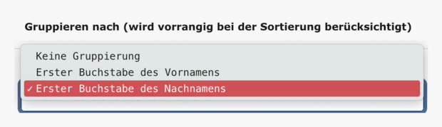 Diese Option erlaubt es, die Personenliste nach dem ersten Buchstaben der Vor -und Nachnamen zu gruppieren.