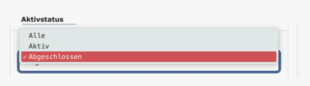 Im Frontend ist diese Option durch den Filter “Aktivitätsstatus” auswählbar.